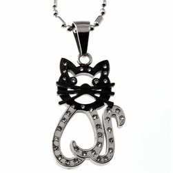 Quality craftsmanship in this collection of stainless steel cat with synthetic cubic zirconia stone pendant. A true innovation in design, our brushed satin and polished stainless steel jewelry features unique brilliant looking designs made with super durable 316L grade stainless steel. Polished to a brilliant shine, all these jewelry pieces are strong, durable, long lasting and comfortable. A 50 cm (19.5") fine Stainless steel chain are included. This Free complimentary ball chain can be cut to size for your convenience. Or you can use your own special chain to match your preference.