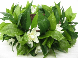 Beautiful Hawaiian full Maile leaf and Tuberose flower headbands, Brown fabric backing with Velcro fastener. One size fits all.