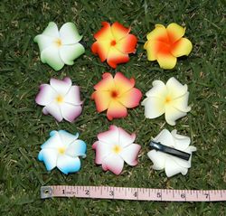 These realistic soft Foam Plumeria flower hair stick or clip are very light weight, true to life plumeria flower size, handmade in Hawaii. *True size plumeria flower Approximate measurements: 3" Dia. and 1" High *Small size plumeria measurements: 2" Dia. and 3/4" High, the clip is 2" long.